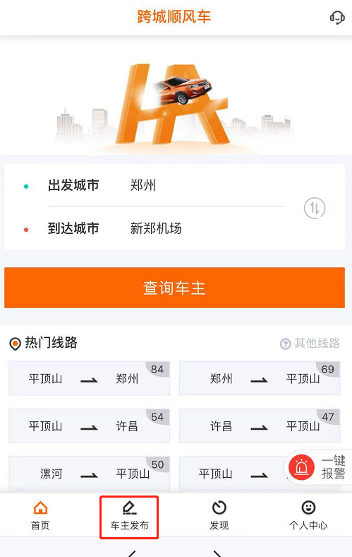 车主请点击 顺风车-车主发布 按钮,填写拼车消息。